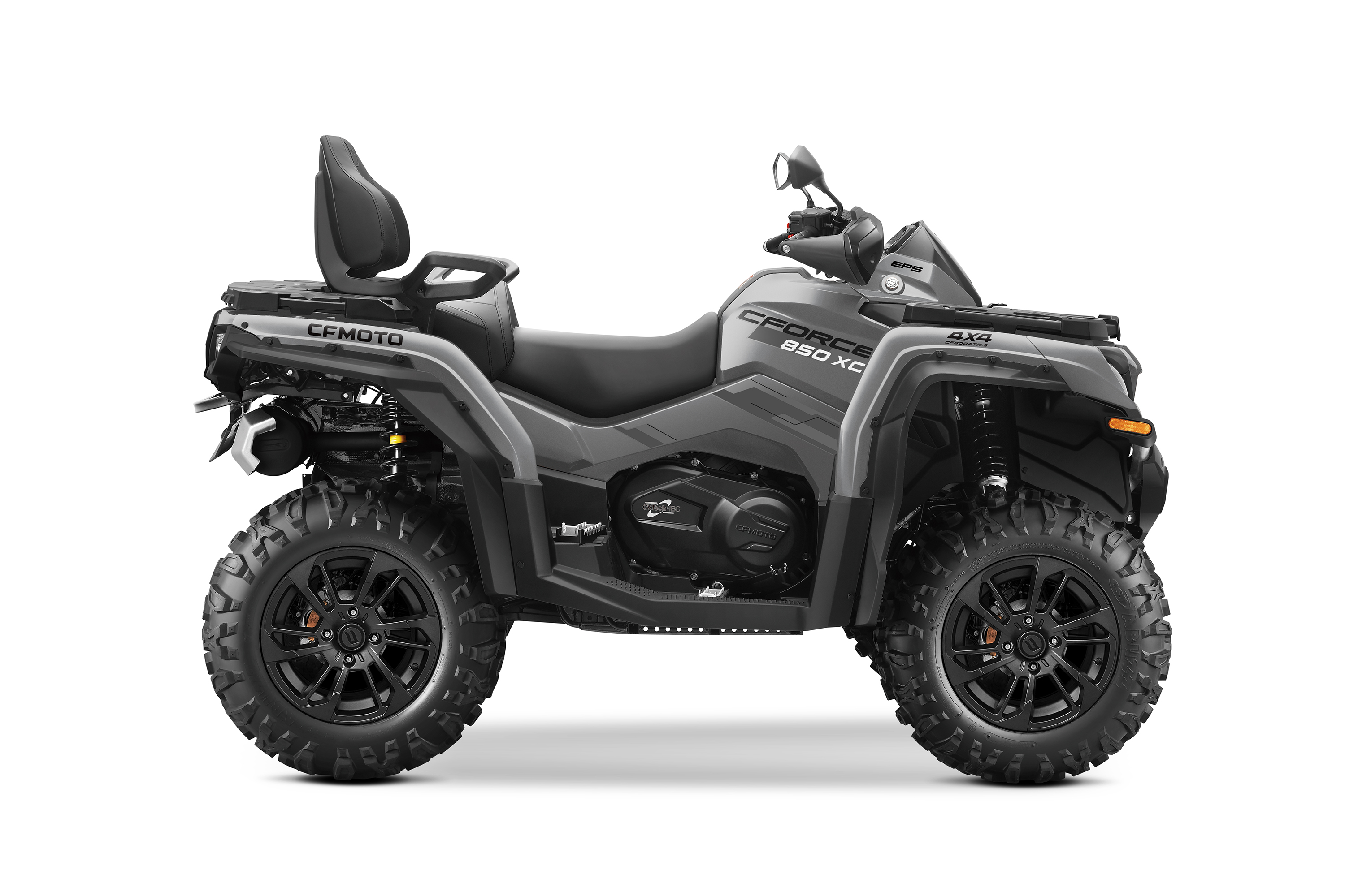 CFORCE 850 XC (X8 H.O. EPS) — квадроцикл, який має покращені ходові характеристики, новітню ергономічну конструкцію й агресивний дизайн і оснащений електропідсилювачем рульового керування EPS (Electric Power Steering).